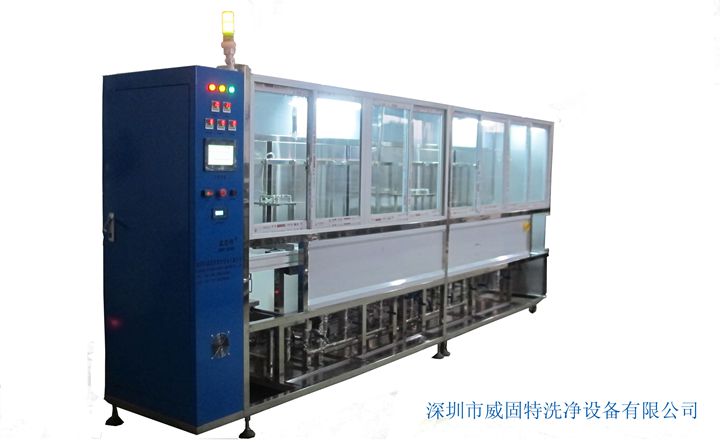 VGT-1409FT為離心甩干式光學超聲波清洗系統,共有14個功能槽,配置有循環過濾系統、有機溶劑蒸餾回收系統、自動恒溫系統、拋動系統、超聲波清洗系統、抽風系統、降噪系統、FFU系統、純水系統、離心甩干系統等。設備采用環保型有機溶劑洗滌、水溶劑洗滌、純水漂洗,為環保型清洗機;