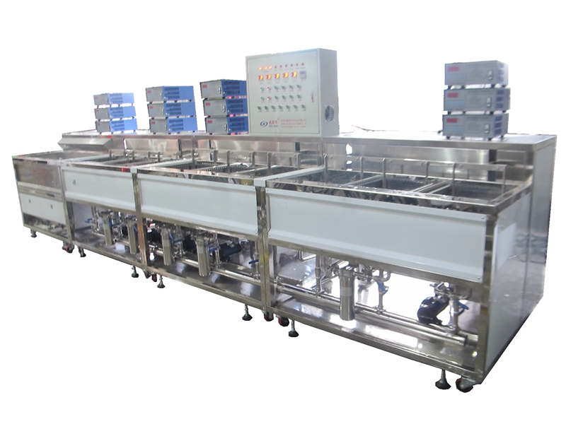 該清洗機主要由超聲波發(fā)生器、換能器、清洗槽、儲液槽、循環(huán)過濾系統(tǒng)、自動恒溫加熱系統(tǒng)、拋動系統(tǒng)、抽氣罩、冷水機、機架、電控柜等組成。